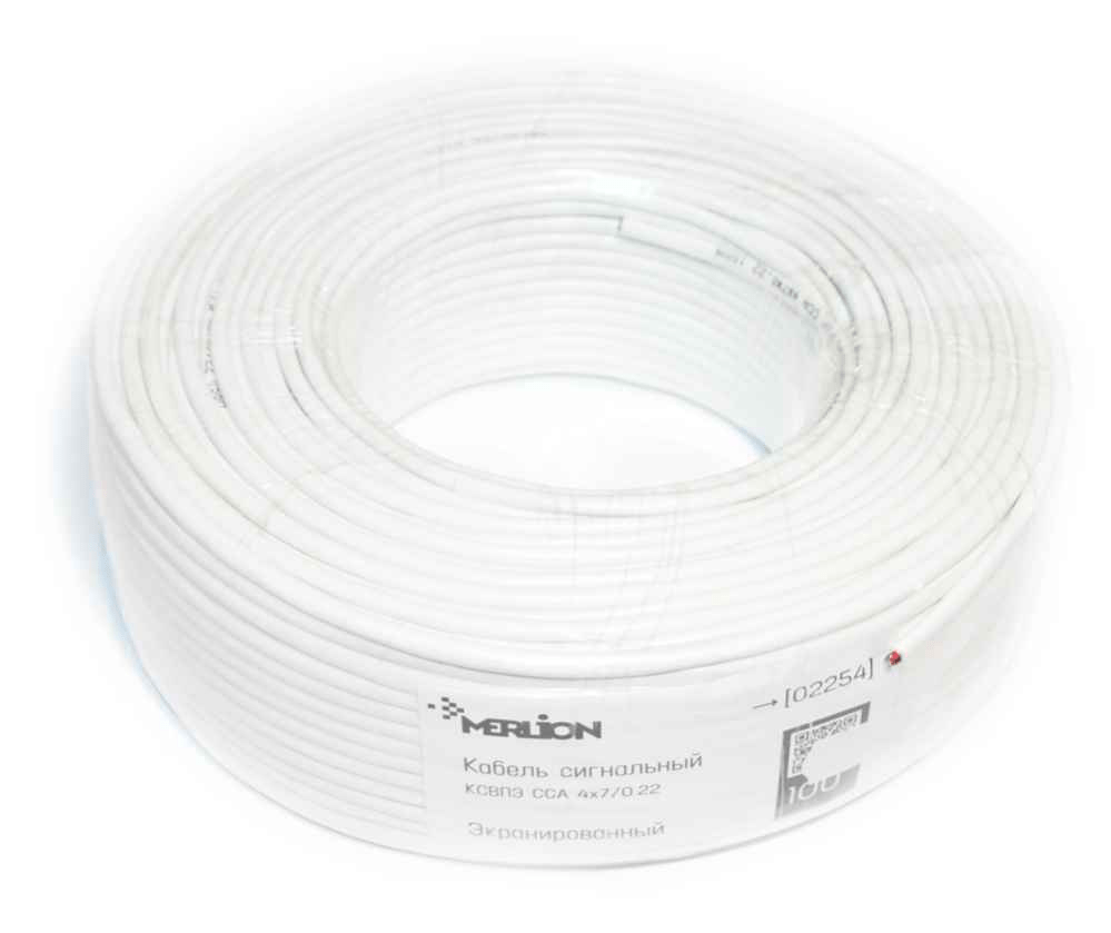 Качественный неэкранированный сигнальный кабельот торговой марки Merlion на базе двух биметальных (ССА) жил с общим сечением 0,22. Каждая из жил состоит из семи более мелких жилочек. Используется для передачи сигнала в различных системах сигнализации и охраны. В состав бухты вошло 100 метров кабеля.