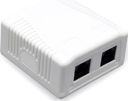 Cablexpert NCAC-1F5E-01 – внешняя компактная розетка с двумя экранированными сетевыми разъемами CAT5E. Цвет корпуса белый.