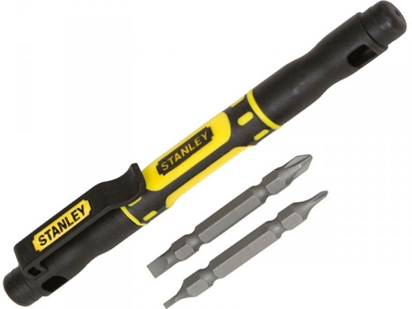 Stanley 66-344M - это карманная с 2-мя двусторонними вставками(SL: 4мм / 3мм PH0 / PH1) отвертка, длиной стержня 120 мм. никелированный стержень произведен из борсодержащей стали, что продлевает срок эксплуатации. Оснащена магнитным наконечником который отвечает стандарту 56 HRC. Рукоятка выполнена из качественных компонентов, оснащена удобными резиновыми вставками.
