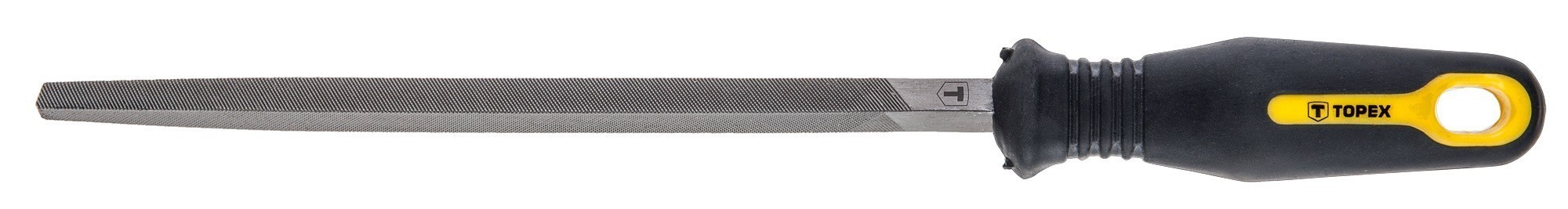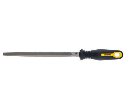 Напильник по металлу треугольный TOPEX длиной 200 мм. Предназначен для шлифования металла. Изготовлен из высококачественной стали T12.