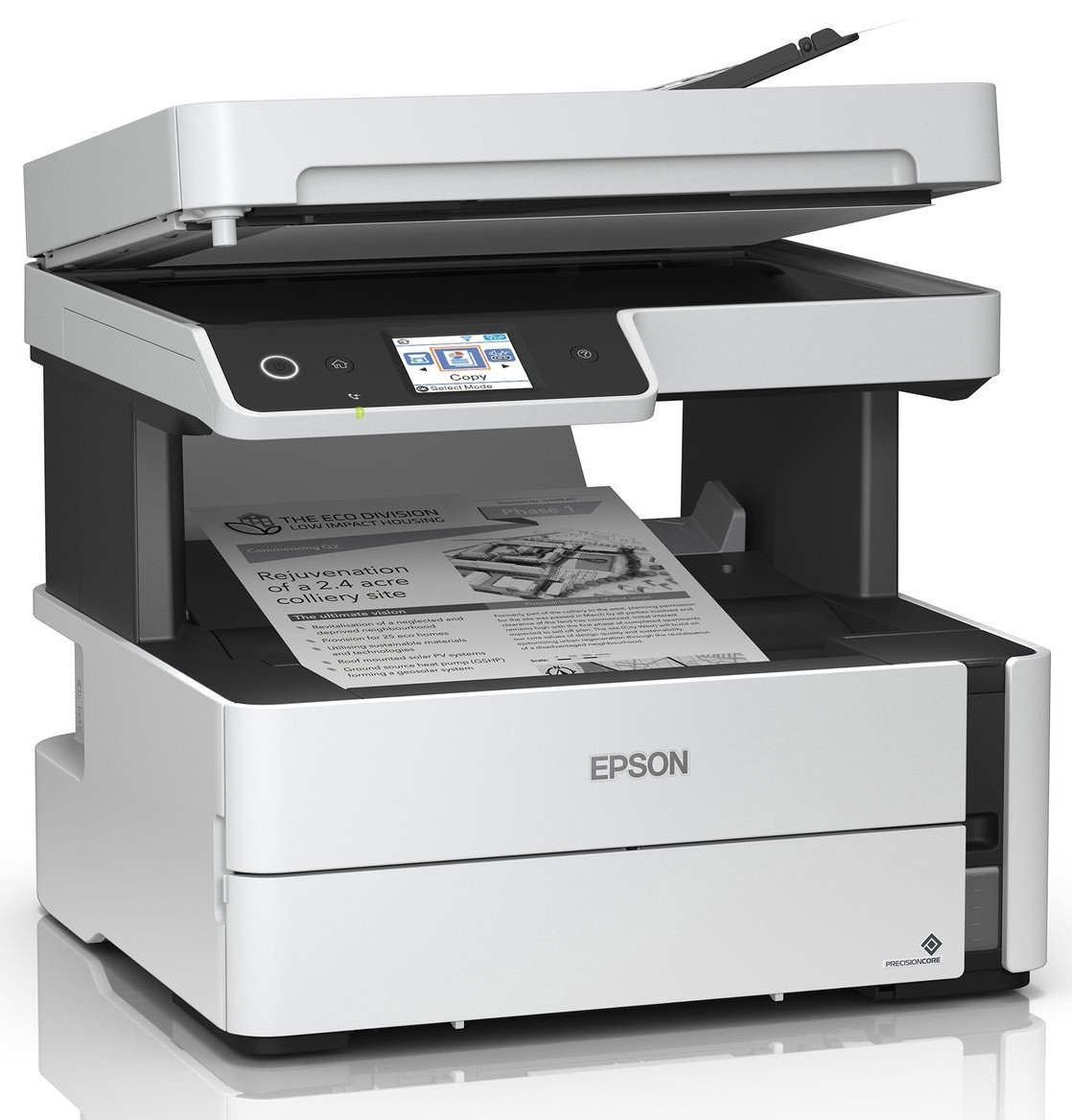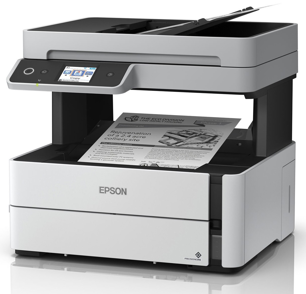 - БФП Epson M3170 з WiFi Фабрика друку {C11CG92405} (Монохромний, 20 ст/хв, 1200x2400 dpi, двосторонній друк, 6.1 см РК дисплей, WiFi, LAN, USB (type B), картридж: C13T01L14A (2K), або C13T03P14A (6K))