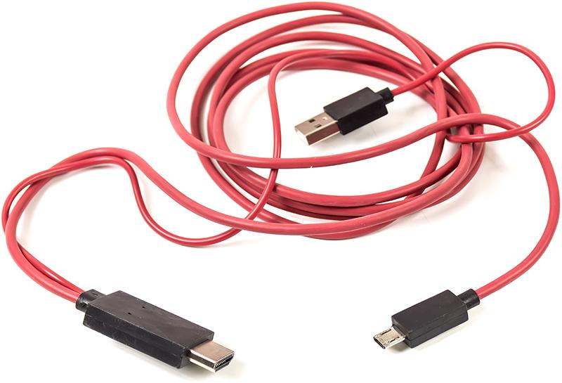 Кабель мультимедийный PowerPlant microUSB-HDMI+USB, 2м, red — CA910861