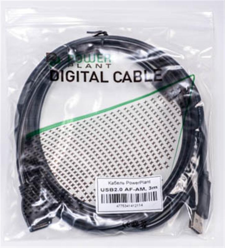 Кабель PowerPlant USB2.0(AF)-USB2.0(AM), 3м, One ferrite, black — KD00AS1211