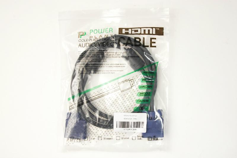 Кабель мультимедийный PowerPlant VGA-VGA, 1.5м, black — KD00AS1284
