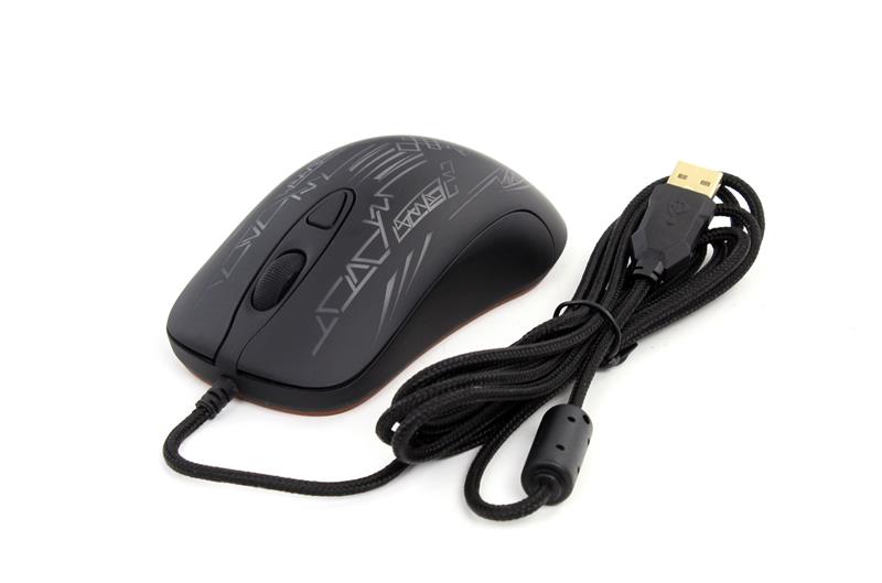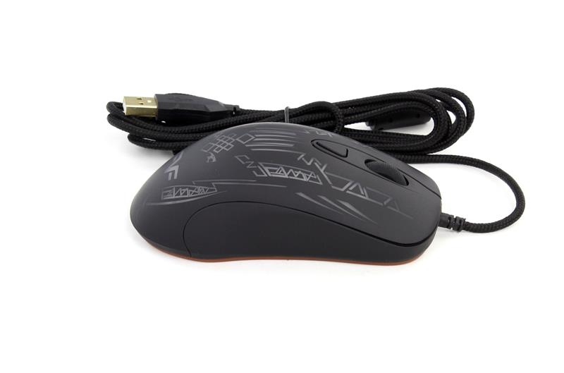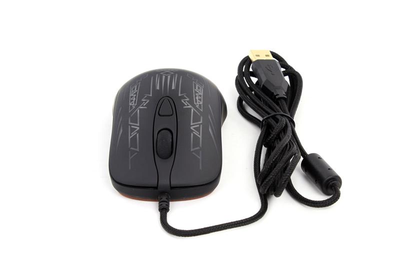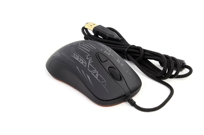 Верхняя панель манипулятора выполнена из приятного на ощуть софттач пластика матового цвета с иллюминирующим рисунком.
