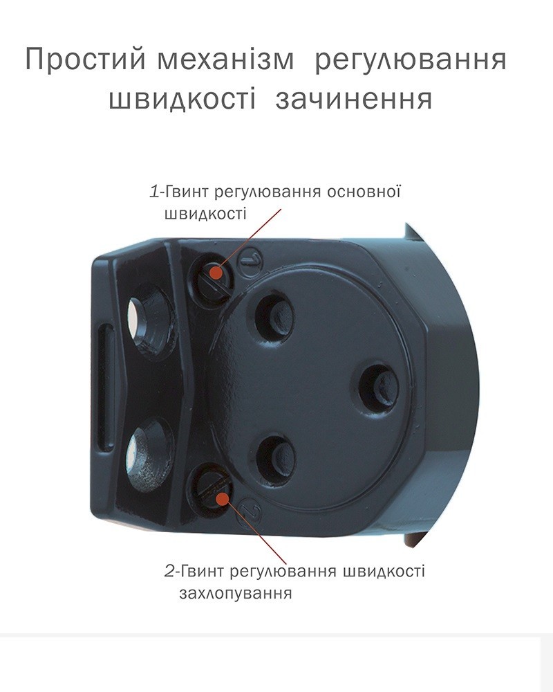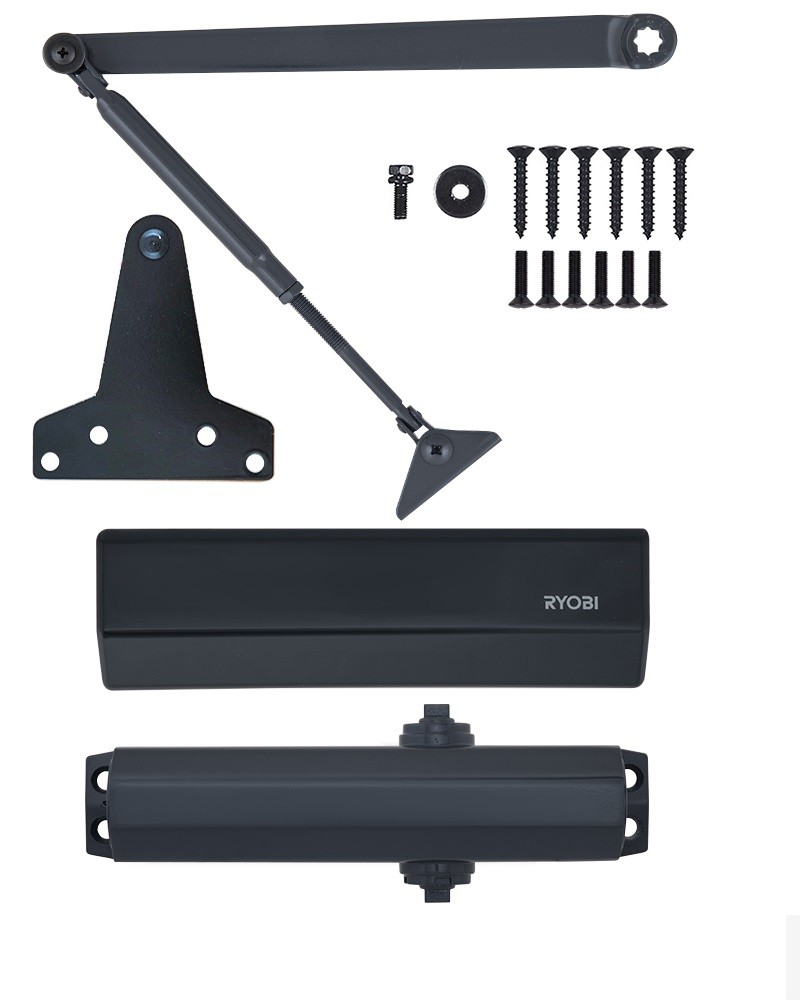 Дополняет доводчик Ryobi D-1554 UNIV Grey Anthracite регулировка базовой и конечной скорости закрытия двери. Цвет корпуса серый антрацит.