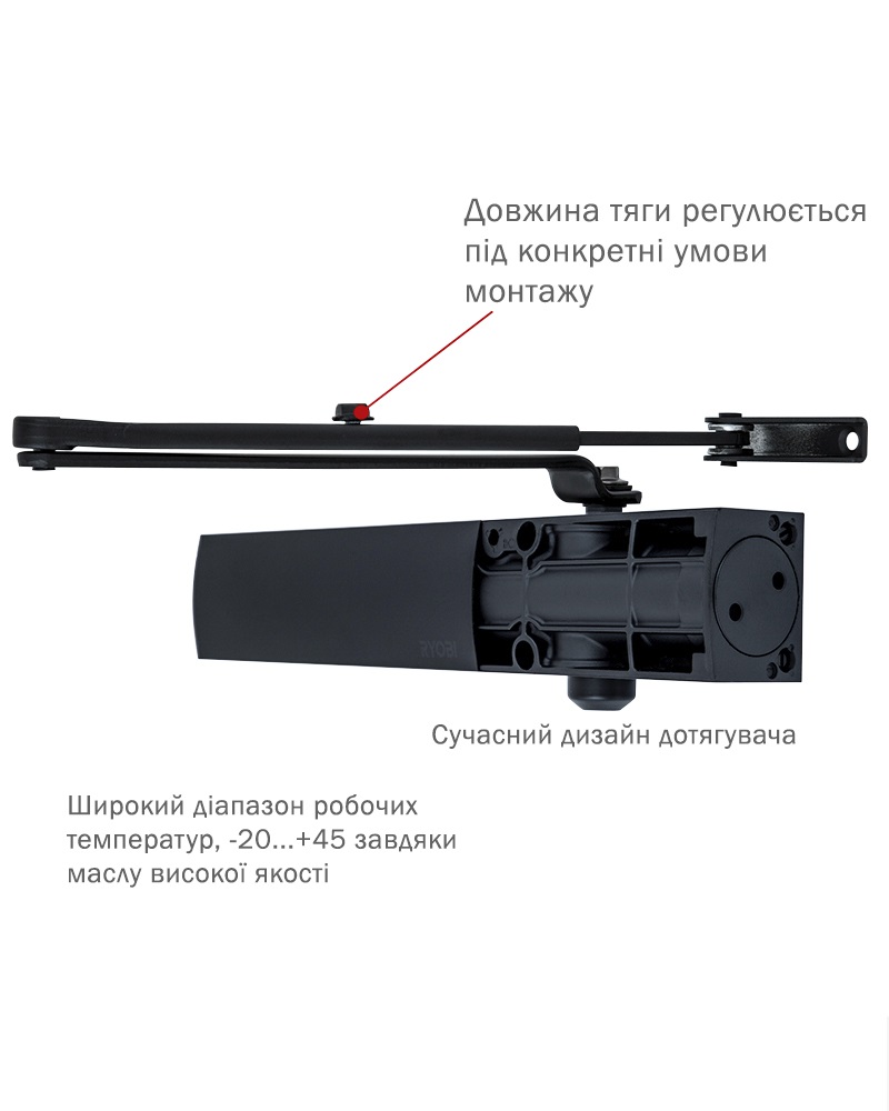 - Дотягувач накладний RYOBI 1200 D-1200 GREY_ANTHRACITE STD_ARM EN_2/3/4 80кг 1100мм FIRE