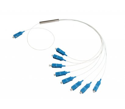 PLC Splitter FiberField 1x8 SC/UPC - это планарный делитель пасивных оптических линий для равномерного разделения мощности оптического сигнала на 8 точек с конекторами типа SC полировкой UPC диаметром кабеля 0,9 мм. Также данний дилитель имеет широкий диапазон волн (1260нм - 1650нм) и низкое затухание.