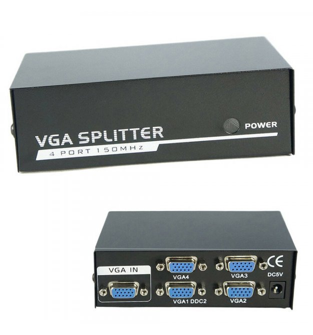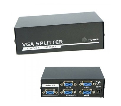 - Активный сплиттер VGA сигнала KV-FJ2504S 150MHz 4 Port, DC5V / 2A