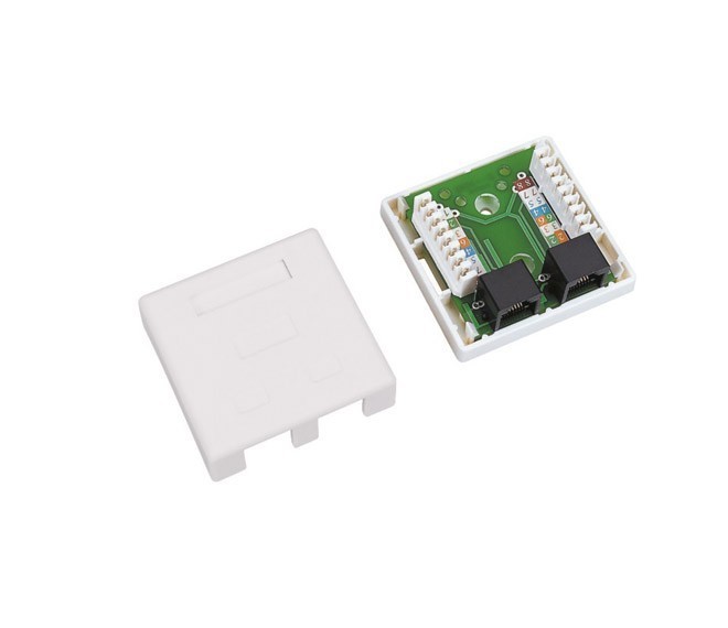 EServer WT-2015A – прочная внешняя розетка с двумя неэкранированными RJ45 портами категории CAT5e на борту. Монтаж розетки не вызовет никаких сложностей на любую поверхность. Цвет розетки классический белый.