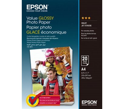 - Фотобумага EPSON Value Glossy Photo Paper глянцевая 183г/м2 A4 20л (C13S400035)