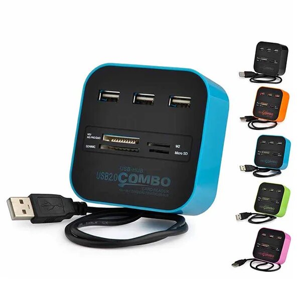 Хаб-кардридер универсальный CUB3, 3 порта, Blue/Black, Блистер - это USB конденсатор(хаб) от известной компании PROinsta. Исполнен в пластиковом корпусе черно-голубого цвета в виде куба . Имеет кабель длиной 10 см. подключения с наконечником USB 2.0. Оснащен 3 портами USB 2.0 и со скоростью в 480 Мбит/с и SD/MMC/TF/M2 портами. Отлично подойдет для расширения функций вашего девайса.