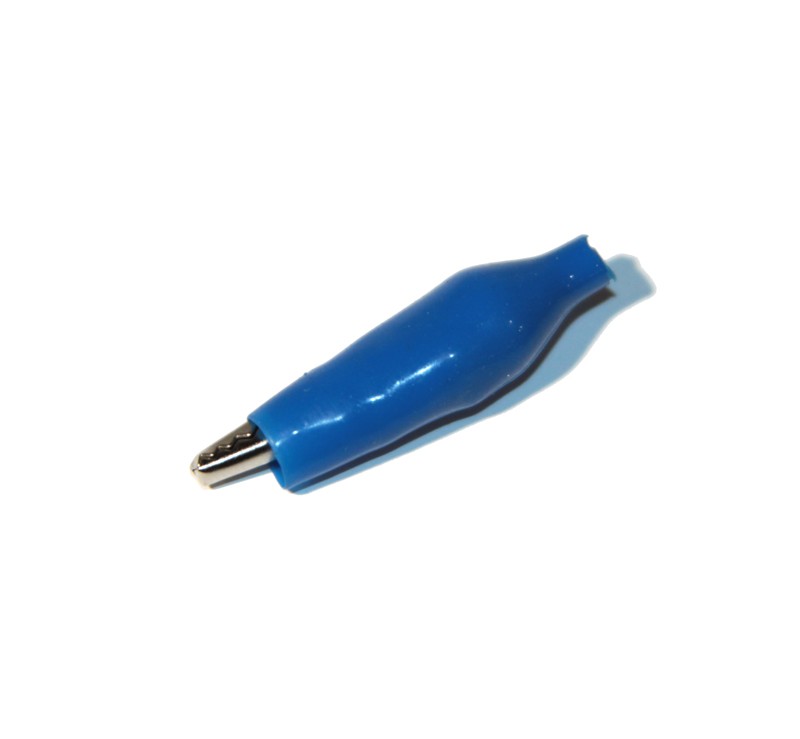 Зажим тестерный "крокодил", 45мм. Синего цвета. Эластичный резиновый кожух.