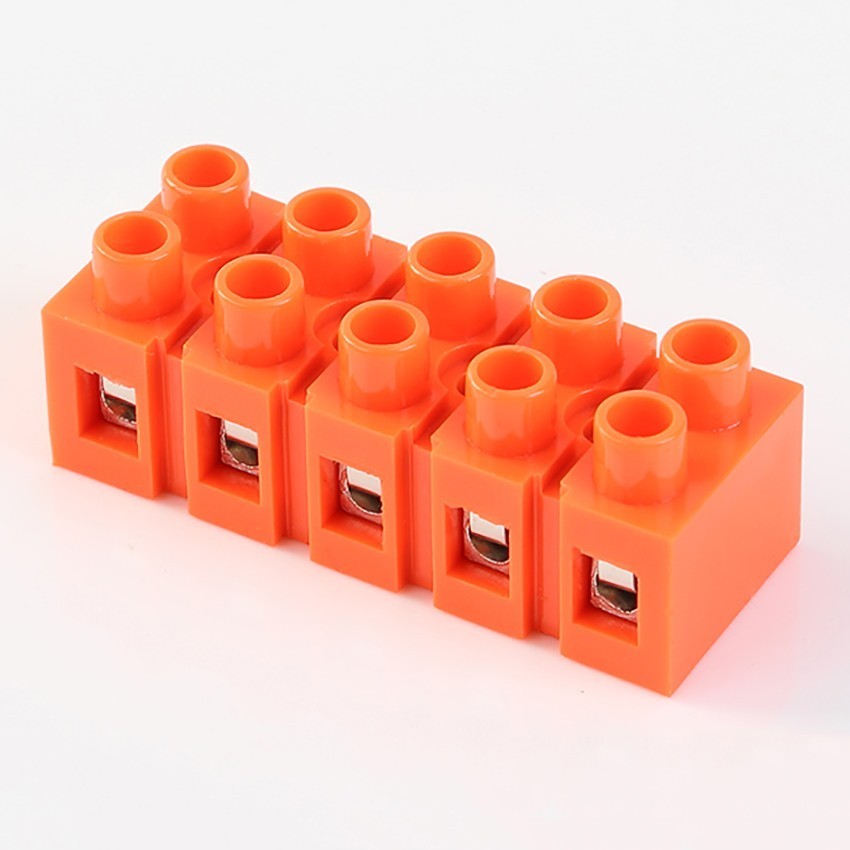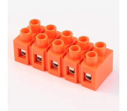 PRC H2519-5P – клеммная колодка на медной основе под любой провод и кабель с сечением от 0,5 до 6 мм2. Допустимая нагрузка 36A/660V. Цвет оранжевый.
