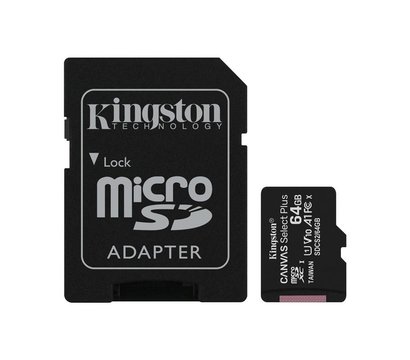 Карта памяти Kingston Canvas Select Plus microSDHC Class10 64GB + SD adapter - SDCS2/64GB