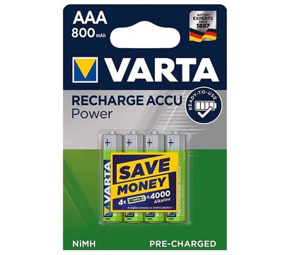 Varta 56703 – ориентированный под ежедневную эксплуатацию набор из четырех аккумуляторных батареек популярного типоразмера AAA/HR03. Батарейки поставляются уже заряженными. Емкость равна 800 мАч. Присущ низкий саморазряд. Рабочее напряжение 1,2 Вольта.