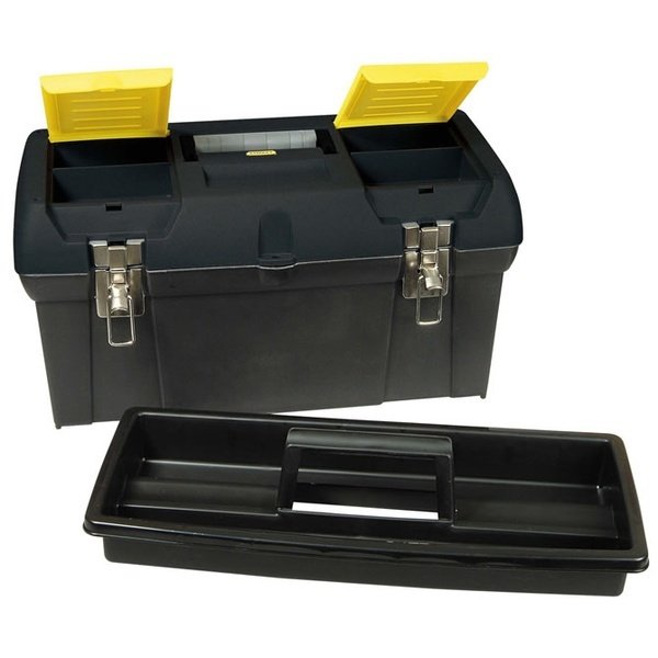 Stanley 1-92-066 - это ящик для инструментов от известной компании Stanley. исполнен из качественного противодарного пластика черного и желтого цвета. Имеет 4 секции и удобную ручку для транспортировки удобные металические замки. Удобный переносной органайзер.
