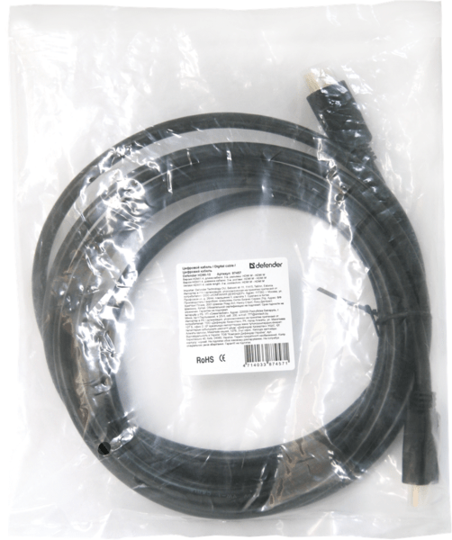 Defender 87353 – пяти метровой длины мультимедиа кабель с HDMI разъемами v 1.4. Каждый из разъемов идет в медном покрытии. Подача сигнала идет в наилучшем качестве за счет использования бескислородной меди высокой очистки. В поддержке 3D изображение. Упаковка пакет.
