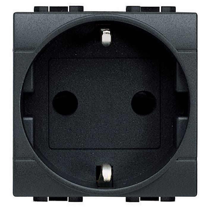 Bticino LivingLight L4141 – одно портовая электрическая розетка 2P + T 16A 250 В серии LIVING LIGHT с оттенком антрацит. Имеет место контакт заземления и шторки. Нагрузка по току равна 16 Амперам. Монтаж выполняется врезным образом. В изготовлении корпуса использован термопласт. Класс герметичности IP20.