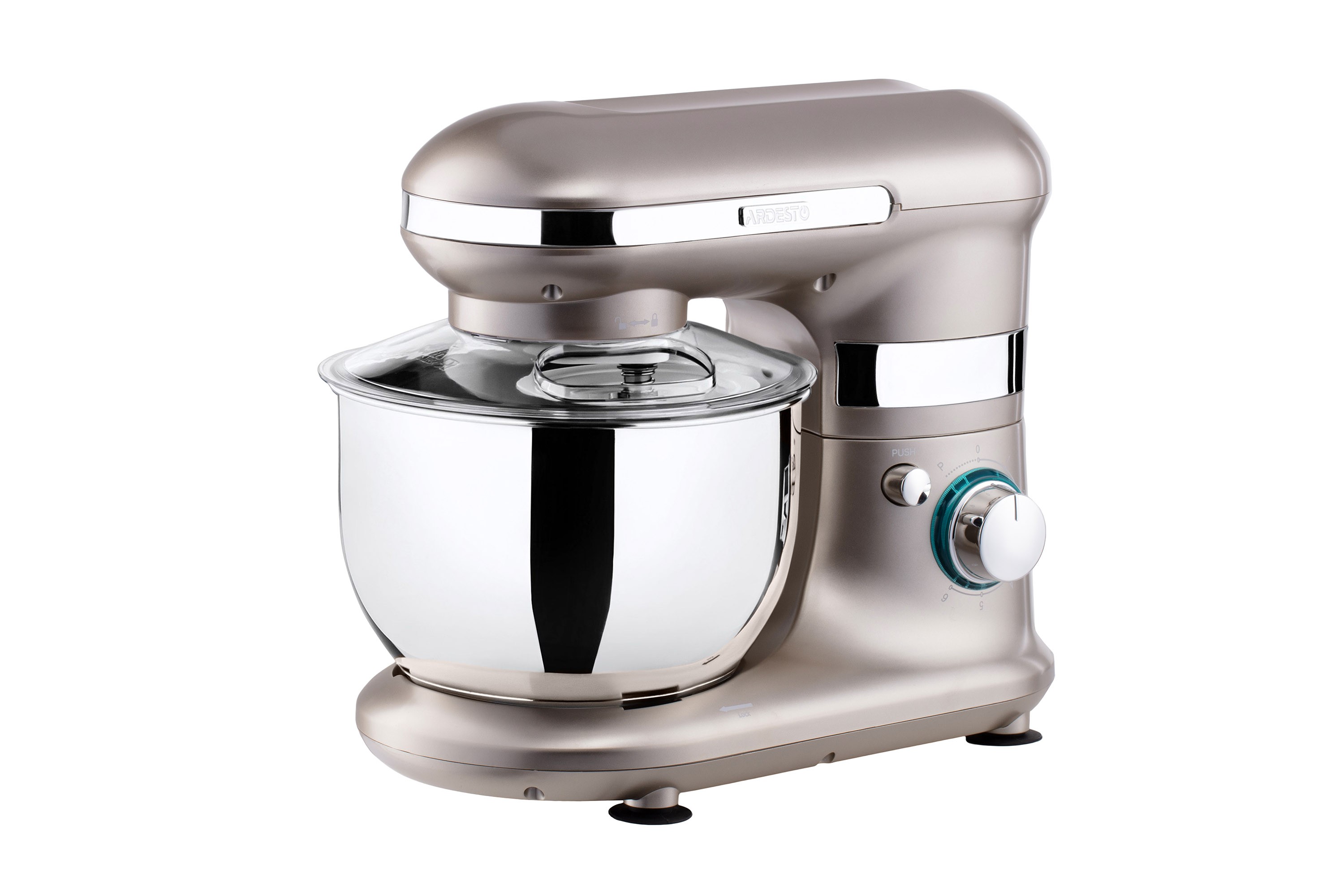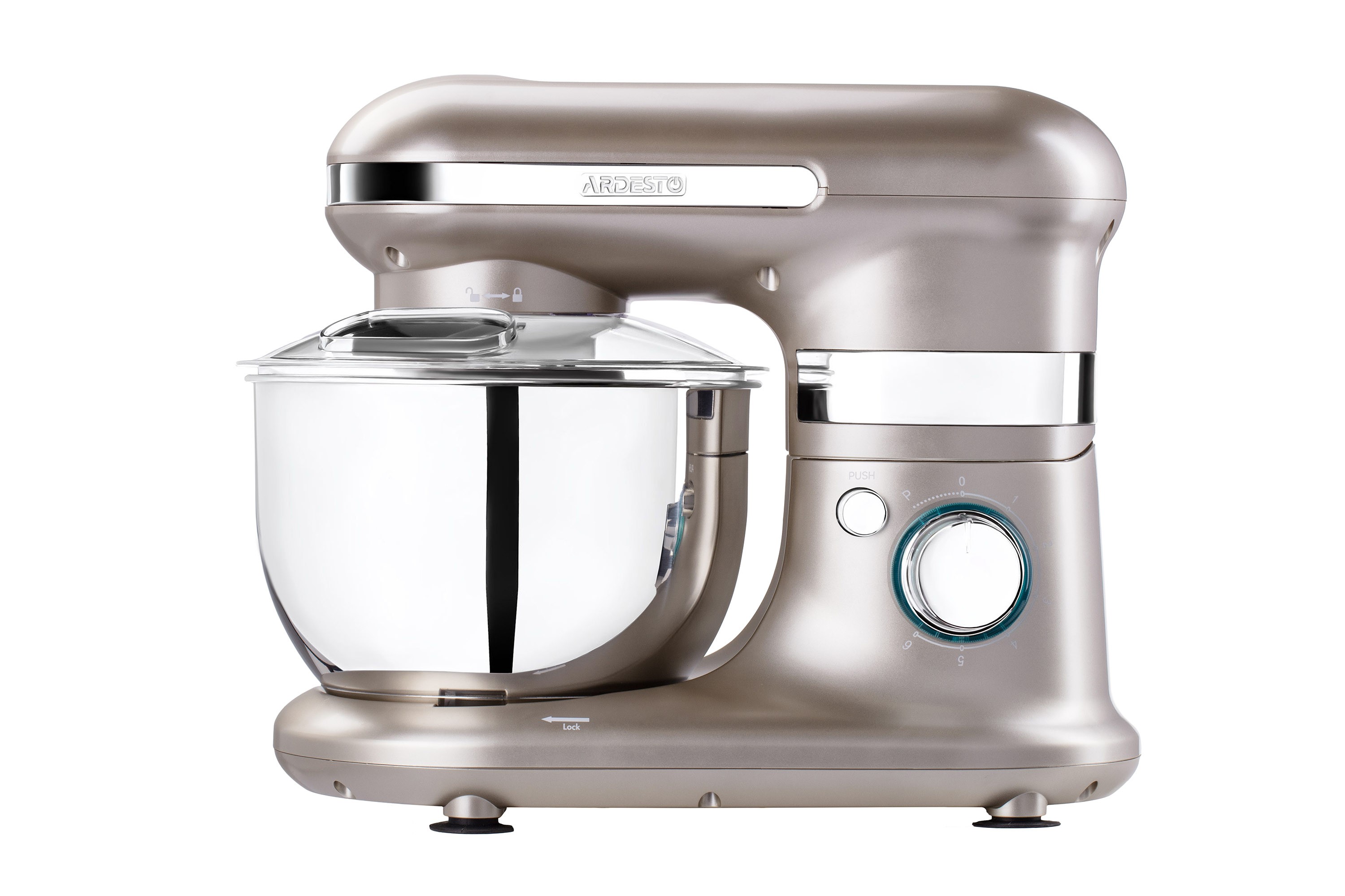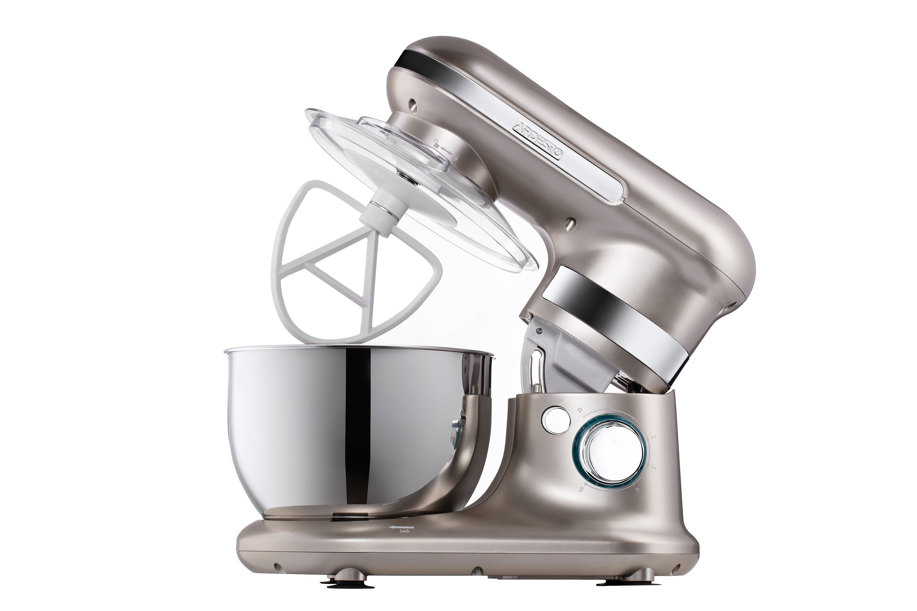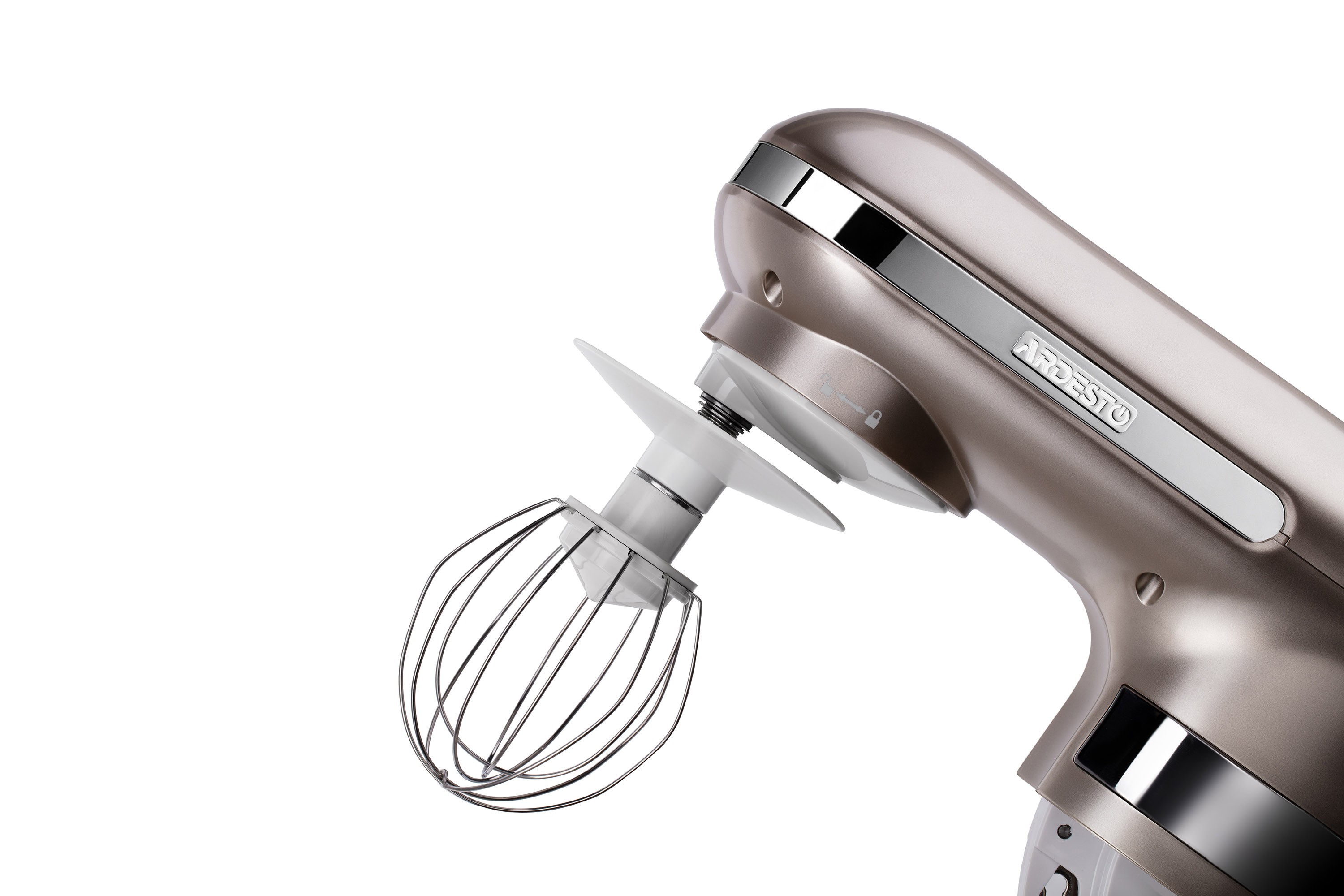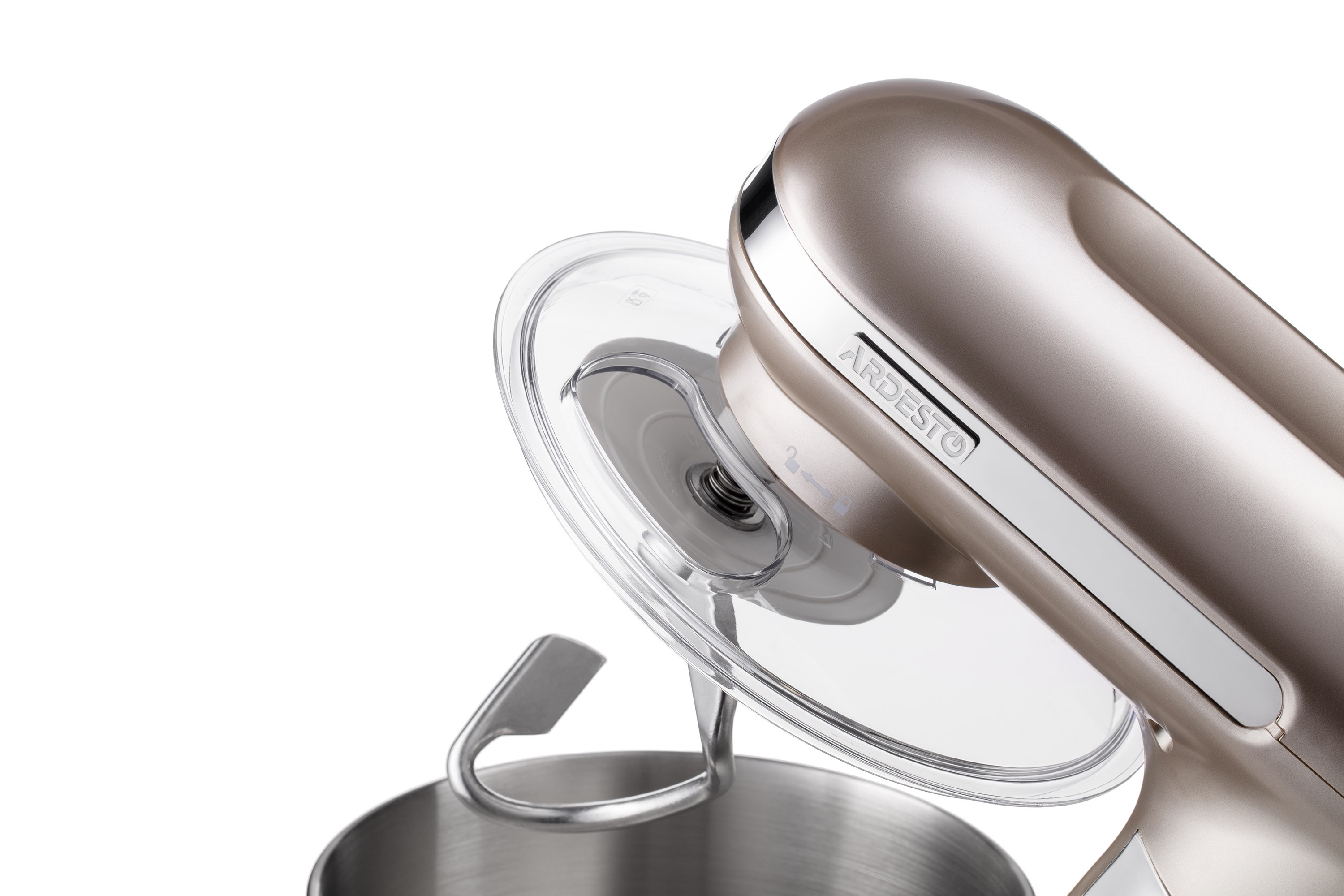 Міксер виконано у ергономічному корпусі з міцного пластику та доповнено хромованими елементами. Чаша на чотири літри вироблена з нержавіючої сталі, а насадки – як з пластику, так і з металу. Вінчик та А-подібна насадка призначені для збивання крему та інших інгредієнтів з рідкою консистенцією, а гачок для замісу тіста. Прозора знімна кришка захищає від бризок, а для вилучення насадок є спеціальна клавіша. Двигун з потужністю 800 Вт захищено від перегріву, передбачено шість режимів швидкості, а також режим Pulse. Для керування використовується зручний важіль, а для стійкого встановлення є ніжки-присоски.