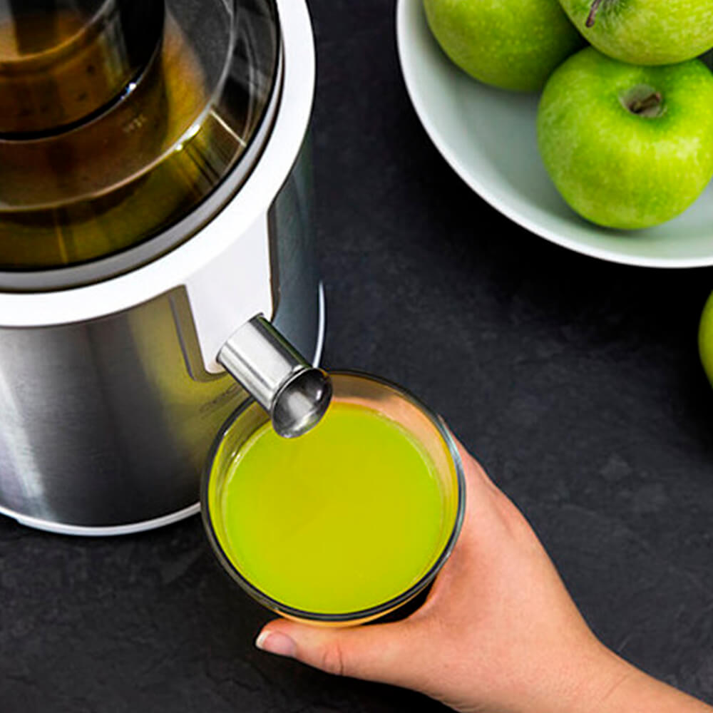 Широкий отвір діаметром 75 мм дозволяє віджимати цілі фрукти і овочі.