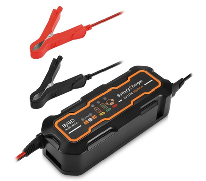 - Автомобильное зарядное устройство MERLION- BYGD 6V/12V 3А, c индикацией, AC 200V-240V, DC 6V-12V/0.9A + крокодиллы