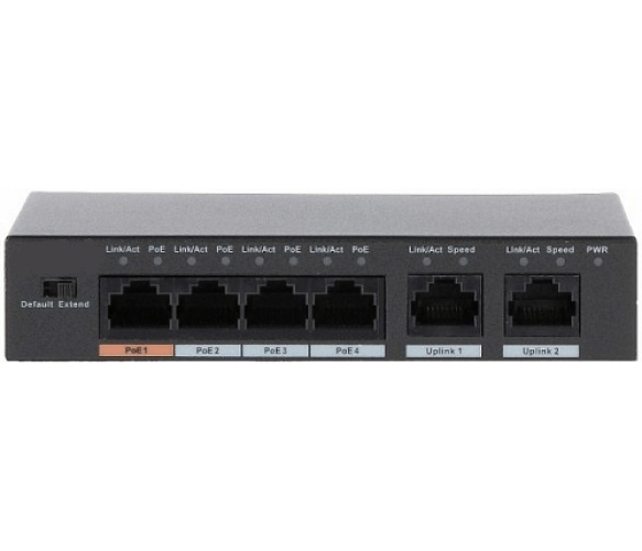 Merlion MLPOE8252-100 – недорогой сетевой коммутатор на 4 Fast Ethernet порта с поддержкой PoE (IEEE802.3af и IEEE803.3at, 60Вт, до 250 метров) и 2 Fast Ethernet порта без PoE поддержки. Передача данных организовывается в двух режимах, обычном и CCTV. Второй делает оптимальным эго в работе для систем видеонаблюдения. Переключение режимов идет при помощи DIP-переключателя. Рабочее напряжение от 48 до 57 Вольт. Корпус здесь металлический.