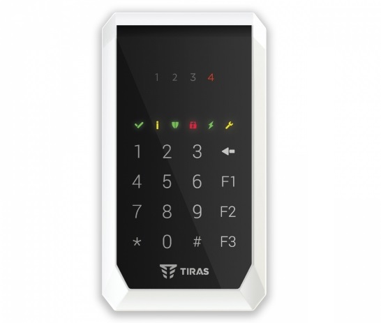Тирас K-PAD4+ – потрясающая клавиатура для сенсорного управления и программирования системы охраны на базе ППК Орион NOVA II. На борту идут четыре светодиодных индикатора зон, а также бесконтактный считыватель идентификаторов Mifare и NFC-метки. С активацией кнопки она поддается подсветке. Наработка на отказ Тирас K-PAD4+не менее 20 000 часов. Связь с ППК строится по шине RS-485 на дистанцию до 1000 метров. Для питания потребуется подача на устройство напряжения от 9,3 до 15,2 Вольт. Потребление тока на уровне 30 мА. Комплект поставки Тирас K-PAD4+ включает в себя четыре ножки, паспорт и саму клавиатуру.