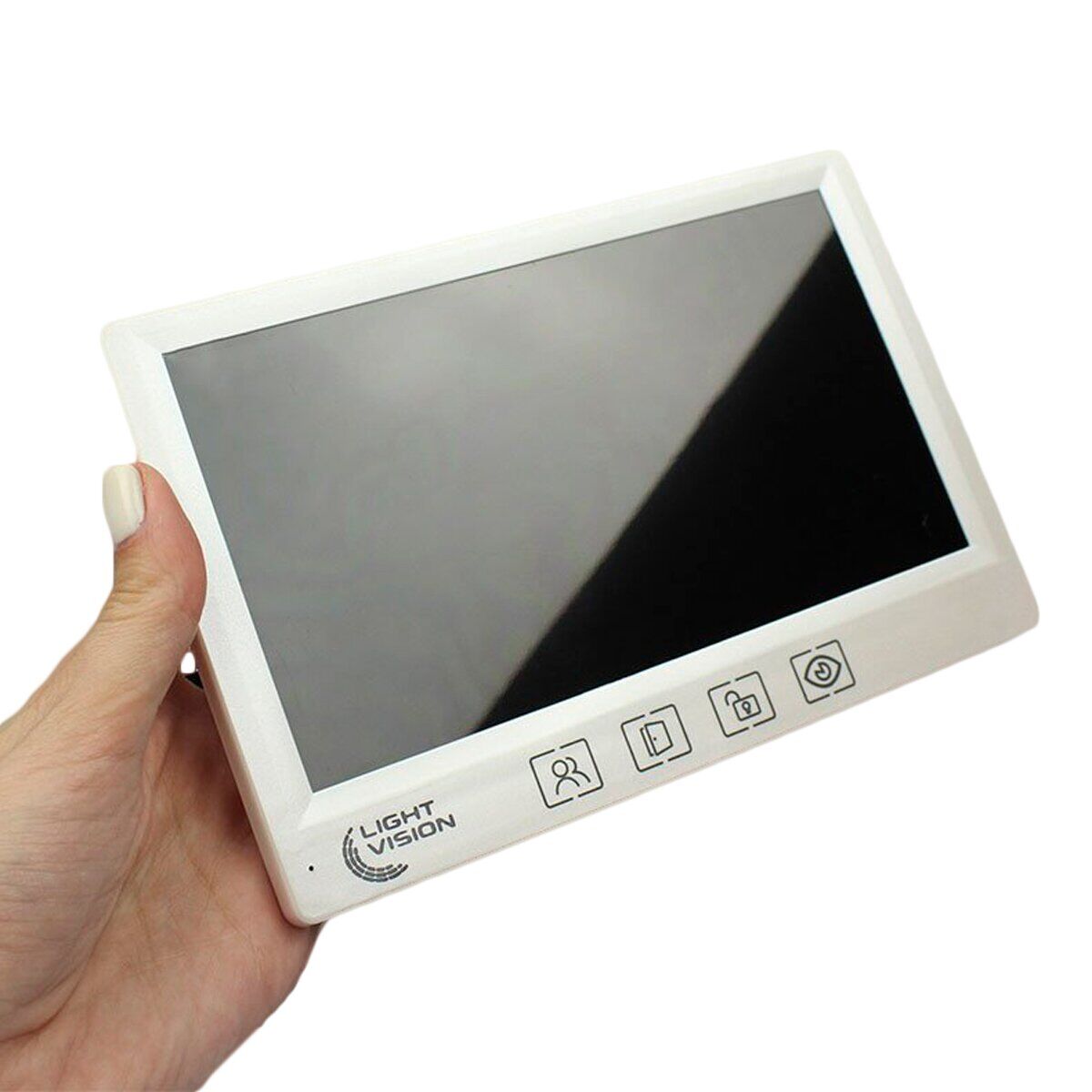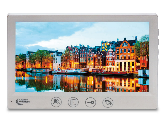 LightVision Amsterdam FHD – яркий представитель видеодомофонов с огромным цветным семи дюймовым IPS дисплеем (1024х600 пикселей), адресным интеркомом (на 6 мониторов) и мультиформатностью работы. Так модель рассчитана на входной сигнал AHD/TVI/CVI (720Р/1080Р) типа. Всего одновременно домофон работает с двумя панелями вызова и двумя камерами видеонаблюдения. Управление комфортное при помощи механических и сенсорных кнопок. Под хранение материала на борту домофона имеется слот под подключение SD карточки памяти с объемом не более 128 гигабайтов. Реализованы функции переадресации, голосовые сообщения, часы, фоторамки. В дополнение идет интегрированный MP3-плеер. В дополнение на борту N/O выход для дополнительного замка (ворот). Монтаж LightVision Amsterdam FHD производится на стену. Впечатляет тонкость пластикового корпуса в сочетании с привлекательным дизайном. Цвет корпуса белый. Размеры LightVision Amsterdam FHD: 175х115х20 миллиметров. Питание на выбор от 220 или 12 Вольт.