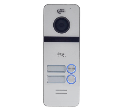 LightVision Tokyo FHD (2RF) – потрясающая вызывная панель на два абонента с встроенным контроллером считывателем карт Mifare (до 200 пользователей) в прочном и герметичном (IP66) металлическом корпусе. Панель включает в себя цветную камеру видеонаблюдения на базе 1/2.7 дюймовой CMOS матрицы. Эта матрица способна задать качественную цветную съемку в формате двух мегапикселей. Оптика LightVision Tokyo FHD (2RF) позволяет рассчитывать на широчайший обзор в 110 градусов. Благодаря инфракрасной подсветке эффективности до пяти метров камера панели не слепнет ночью, а радует хорошей черно-белой картинкой. Возможно подключить кнопку выхода. Уже встроено реле NO/NC. Крепление LightVision Tokyo FHD (2RF) идет на стену. Размеры: 133х48х21 миллиметр.