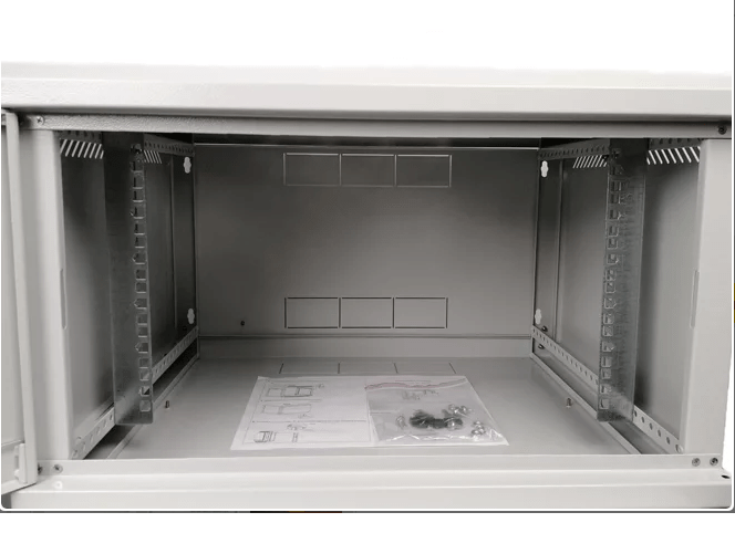 EServer ES-Е635G – новинка на рынке 2020 года в лице настенного серверного шкафа 19-ти дюймовой конструкции и высотой 6U. Шкаф EServer ES-Е635G выполнен с профессиональным подходом к внешнему виду в черном цвете. Дверь состоит из закаленного стекла. Верхняя крышка шкафа рассчитана под размещение до двух вентиляторов с диаметром 120 миллиметров. Внутри шкафа достаточно места под размещения оборудования глубиной до 285 миллиметров. Боковые стенки шкафа идут на замках и поддаются съему. Произведена подготовка под заземление с установкой болтов во всех частях. Поставка идет в разобранном виде, но сборка занимает всего 30 минут без каких либо профессиональных навыков. Комплектация EServer ES-Е635G включает пару вертикальных передних рэков.