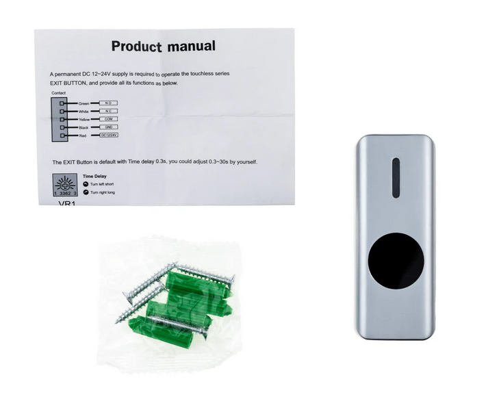 Seven K-7497NDW – накладного монтажа уличная бесконтактная кнопка выхода для СКУД в металлическом корпусе из нержавеющей стали. Чувствительность кнопки находится на регуляции в рамках от 3 до 30 сантиметров. Кнопка поддерживается настройка задержки в рамках от 0,3 до 30 секунд. Чувствительность настраиваемая от 3 до 30 см. Контакты: NO, NC, COM. Важной особенностью модели является присутствие LED индикации. Напряжение по входе 12 или 24 Вольта. Размеры: 80х32х23 миллиметра.