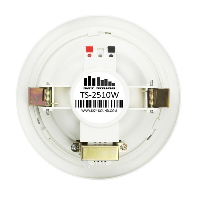 Sky Sound TS-2510W – потолочного врезного монтажа акустика мощности 10-20 Ватт под задачу фонового озвучивания в помещении. Модель способна воспроизвести звучание в диапазоне частот от 110 до 20 000 Гц. Основу корпуса здесь составил прочный и качественный пластик, но решетка металлическая. Цвет. Белый. Монтажный размер 165 миллиметров в диаметре и 55 миллиметров в глубину.