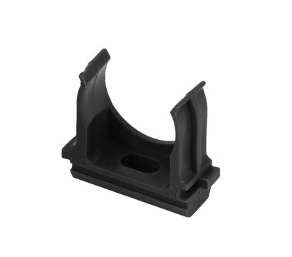 Клипса на полипропиленовой основе для фиксации гладких ПВХ и гофрированных труб диаметром 25 миллиметров к всевозможным поверхностям. Основание клипсы предусматривает использование самореза, винтов или шурупов. Длина у основания 30 миллиметров. Цвет черный. В упаковке содержится 50 штук.