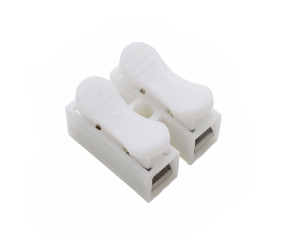 Voltronic CH-2 – универсальный кнопочный двух контактный соединитель с допустимой нагрузкой по току 10 Амперов. Рабочее напряжение 250 Вольт. Материал контактов здесь биметалл. Корпус пластик. Цвет белый.
