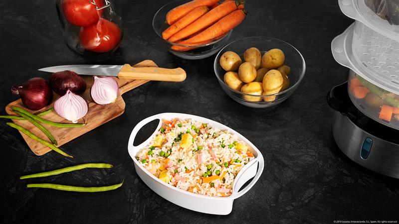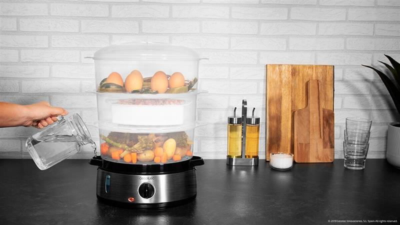 Он обладает такой большой мощностью, что вы можете готовить любую еду, ничто не сопротивляясь вам. Его двигатель мощностью 800 Вт позволит вам наслаждаться вкусными блюдами за короткое время, и вы можете готовить на пару все, от куриных грудок и рыбного филе до картофеля или риса, и все это одновременно, так что ваше меню не имеет ограничений. Здоровое питание никогда не было таким простым.