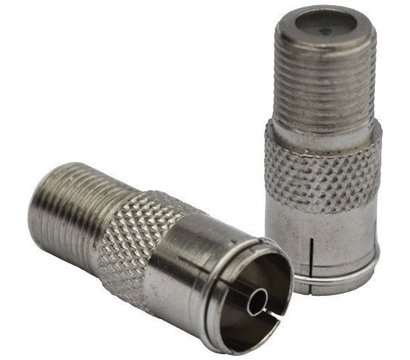Металлический прямой антенный переходник гнездо TV( кольцо) – гнездо F для соединения коаксиала с оборудованием или между собой.