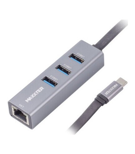 - Адаптер Maxxter NECH-3P-02 з Type-C на Gigabit Ethernet NECH-3P-02, 3 Ports USB 3.0 1000 Mbps, метал, темно-сірий