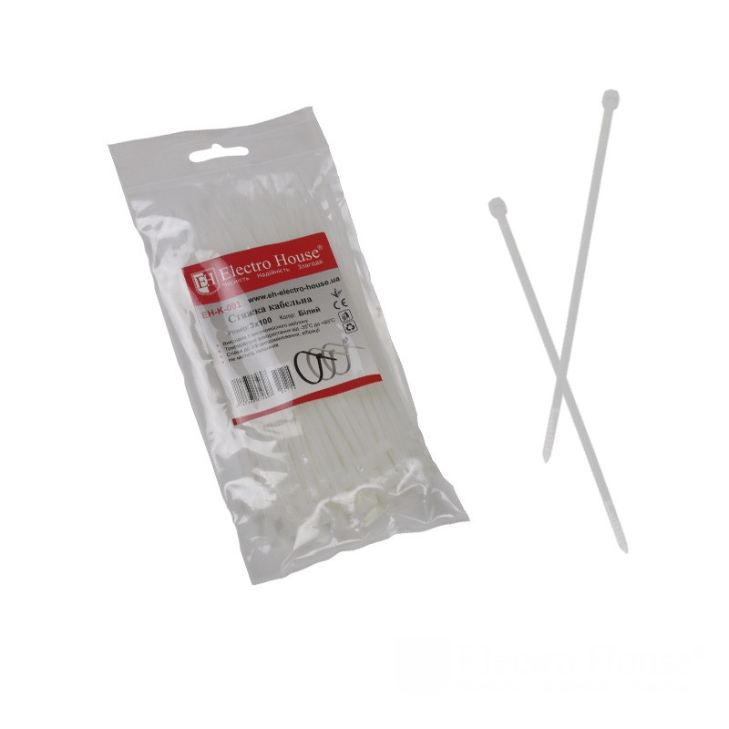 Стяжки ElectroHouse EH-K-001, 3х100мм, white, 100 шт.