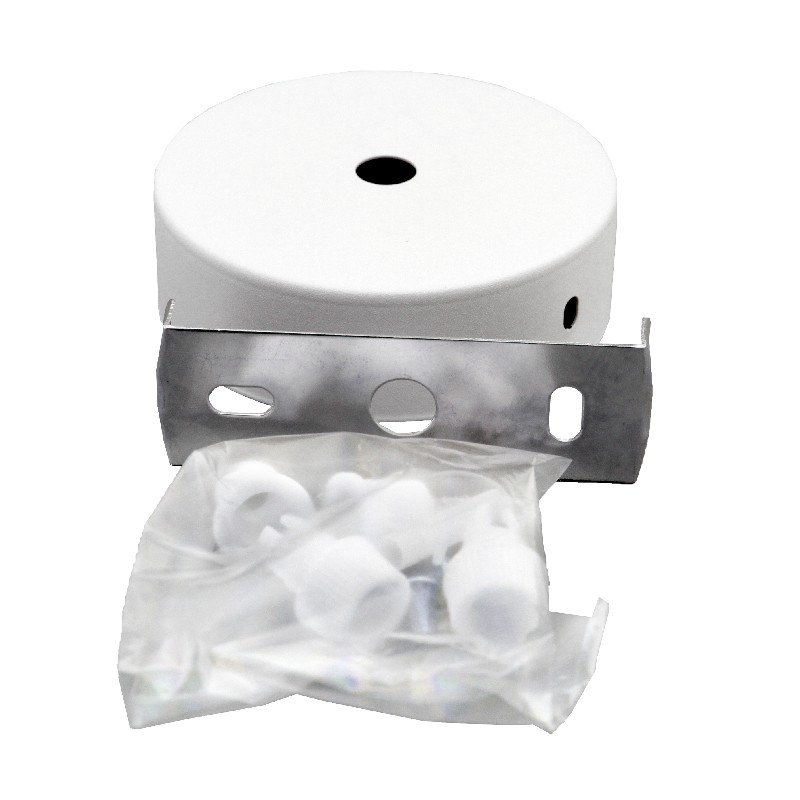 Потолочное крепление для светильника белое производства компании ElectroHouse предназначено для монтажа светильника потолочного направленного модульного. Крепление изготовлено из металла и комплектуется двумя кабельными вводами, а так же всеми необходимыми для монтажа этого изделия крепежными элементами (дюбеля, саморезы, крепежные винты). Диаметр крепления - 80 мм, а его высота - 24 мм. Диаметр отверстия для ввода кабеля - 10 мм.