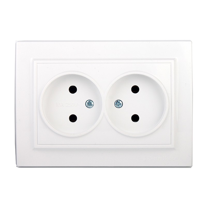 Розетка двойная без заземления рассчитана для эксплуатации двумя потребителями питания. Защитная передняя панель выполнена в белом мягком цвете, не бросается в глаза на общем фоне. Внутренний механизм изготовлен из качественной керамики. Все элементы фиксации провода плотно посажены в колодку и не подлежат деформации при механических воздействиях, нагреве, вибрации. Максимально допустимый номинальный ток 16 А. Долговечность обеспечивается благодаря европейским стандартам производства. До 40 000 циклов работы. Устойчива к пробоям сети. Оборудована монтажным модулем, который дает возможность без особых усилий установить в специально предназначенные места. Устойчива к различным температурным режимам, от -20 до +40. Экологически безопасна, не требует дополнительных условий утилизации. Прекрасное соотношение цена-качество. Устанавливается специалистом при полном соблюдении правил безопасности.
