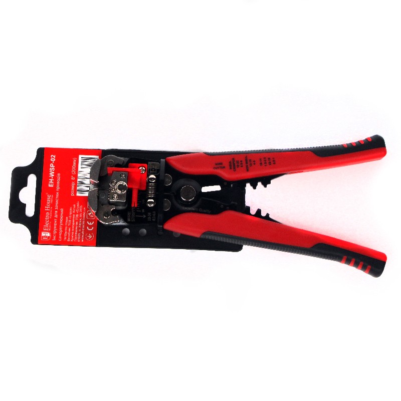 Инструмент для зачистки проводов саморегулирующийся 8" EH-WSP-02 от компании ElectroHouse – это профессиональный инструмент для снятия изоляции, который делает эту работу более комфортной, быстрой, а самое главное – качественной. Электромонтаж или монтаж других коммуникаций в подавляющем большинстве случаев сопровождается зачисткой провода. Не секрет, что можно снять изоляцию и без применения инструмента либо используя самодельные приспособления. Эти способы широко известны, но применимы они исключительно при разовой зачистке очень небольшого количества проводов. Эти способы, как правило, требуют затраты гораздо большего времени и усилий. И далеко не всегда удается качественно, не повредив жилу, снять изоляцию. Стриппер саморегулирующийся позволяет быстро, а самое главное, качественно выполнить эту работу. Кроме того, эффективно использовать этот инструмент сможет не только профессионал, но и новичок, ведь он не требует настройки под диаметр кабеля, а настраивается сам. Также самонастройка существенно ускоряет работу по зачистке проводов разных диаметров, ведь не тратится время для настройки под каждый диаметр. Эта модель стриппера применяется для зачистки кабеля диаметром до 8 мм.