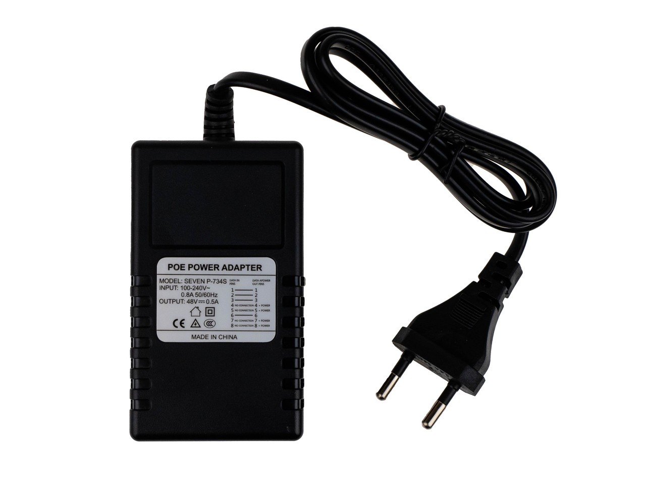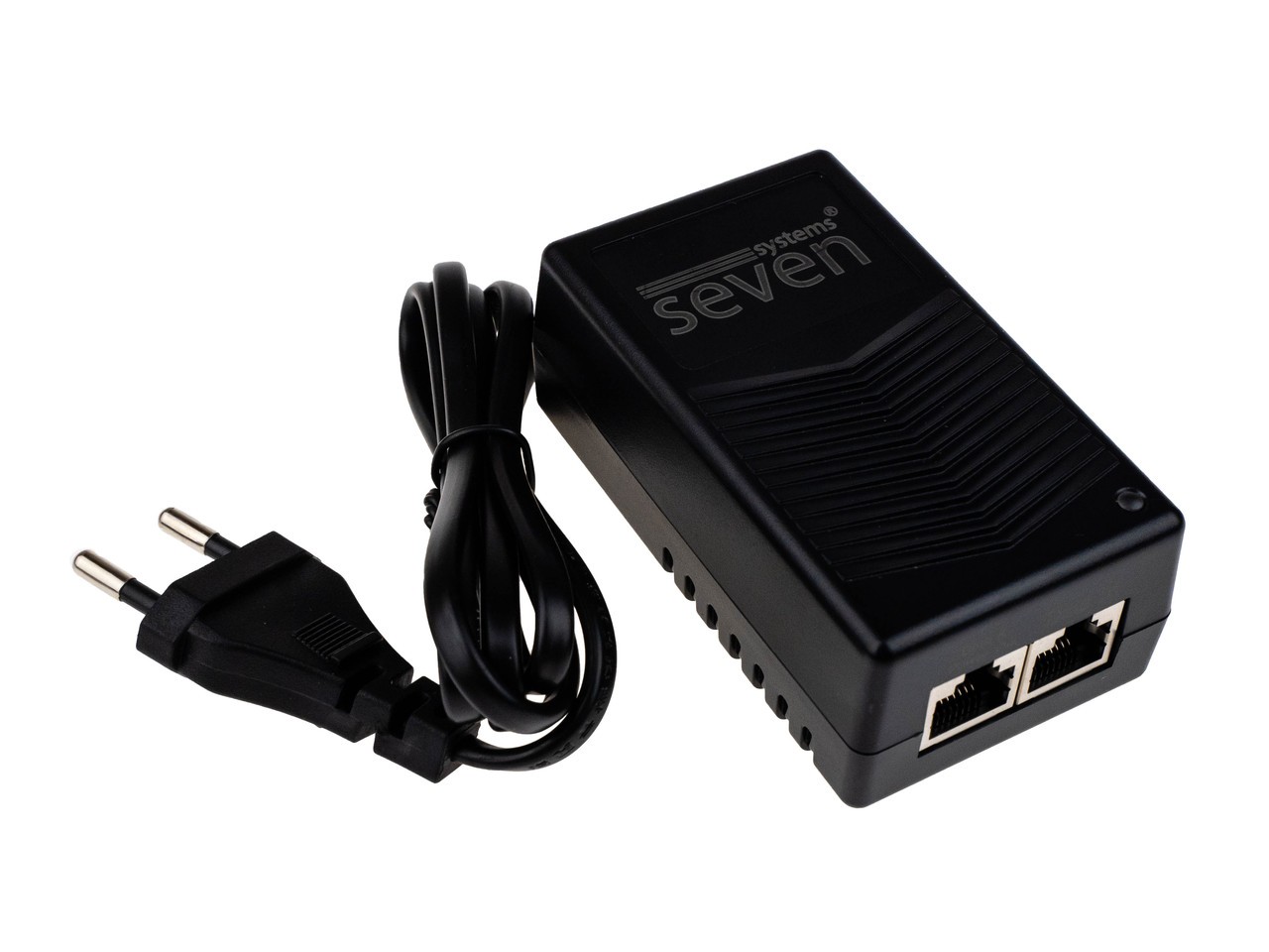 Seven P-734S – инжектор Megabit Ethernet обеспечивающий постоянным током и данными устройства в тех местах где отсутствует доступ к розетке или линии электропередач. Инжектор позволяет задать передачу питания и видеосигнала через кабель витая пара. Предусмотрена высокоэффективная защита от перенапряжения, КЗ. Напряжение на выход 48 Вольт. Дистанция успешной передачи составляет до 100 метров. Размеры: 90x52x35 мм.