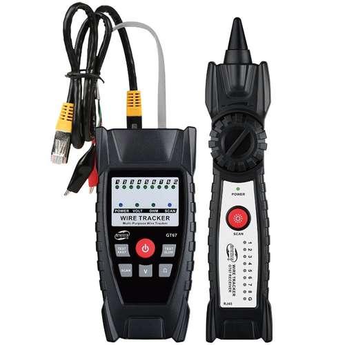 Данный кабельный тестер состоит из двух инструментов тестирования: передатчика и тестера, работающих в тандеме. GT67 способен проверять кабели на проводимость, наличие короткого замыкания проводников и открытой цепи, а также определять целостность кабельной структуры.