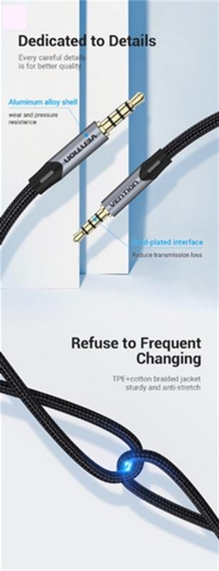 Аудио кабель Vention Audio 3.5 mm - 3.5 mm 2 m, Metal Type, Silver - BAQHH