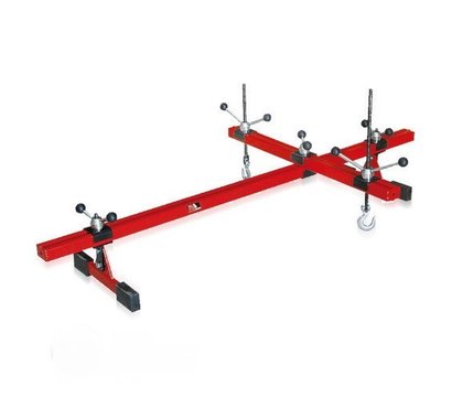 Траверса для вывешивания двигателя – приспособление, часто используемое в мастерских и станциях тех. обслуживания авто для работы при вывешивании двигателя и дальнейшей замены его составных частей, без извлечения его целиком из моторного отсека автомобиля. Это механизм применяется в различных видах работ: при кузовном и при слесарном. Траверсы для вывешивания двигателя хороши тем, что не нуждаются в источнике питания, поэтому оказываются экономными при выполнении работ. Благодаря траверсе рабочий процесс моториста становится легче и значительно проще, ведь с помощью этого простого оборудования один человек без труда может выполнить всю силовую работу. | Конструкция траверсы проста и состоит из двух опор, они устанавливаются на внутренние поверхности самого моторного отсека, и двух цепей с фиксаторами, за которые и крепится двигатель. За счёт большого диапазона регулировки, траверсы можно применять для узлов на любых видах автомобилей: легковых, грузовых и микроавтобусах. Крепление двигателя происходит в двух главных точках благодаря наличию в своём устройстве специальных особо мощных захватов, которые на нём фиксируются с противоположной стороны на креплениях. Траверсу мастера ещё называют трапецией с одним винтом, универсальной опорой для вывешивания двигателя и КПП «на крыльях». С помощью траверсы можно с лёгкостью выгрузить и сбалансировать различные тяжелые грузы автомобильные и неавтомобильные со смещенным центром нагрузки. Этот не сложный механизм имеет особо компактные размеры, высокую манёвренность во время работы и при этом обладает мощной грузоподъёмностью. Такие характеристики установки в сочетании с невысокой ценой делают траверсы для вывешивания двигателя незаменимым другом и помощником для специалистов автосервиса.