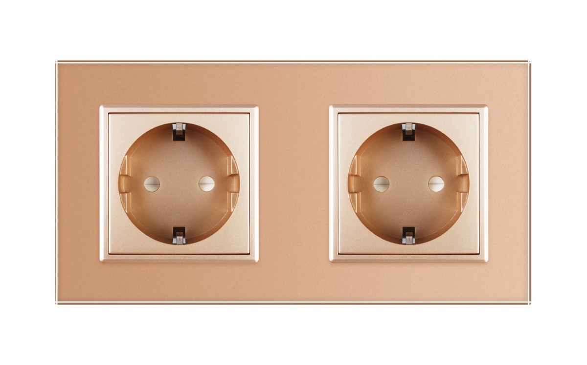 Розетка Livolo VL-C7C2EU-13 16А Gold glass с шторками