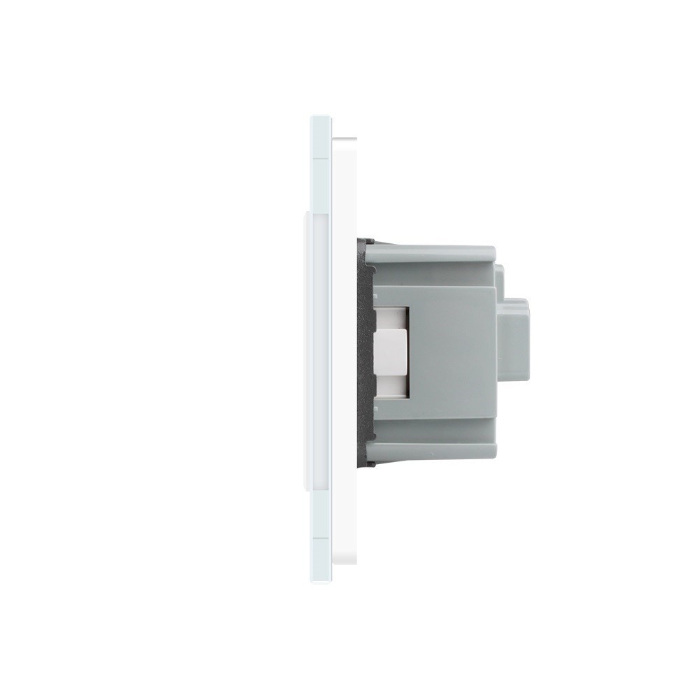 Рамка розетки выполненная из оптического стекла OptiWhite панель устойчива к износу и удобна в уходе.