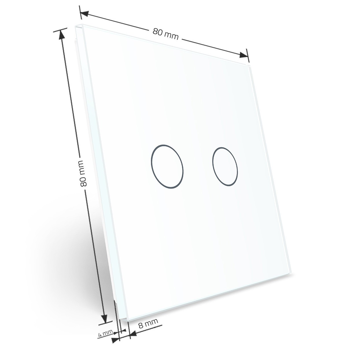 Стеклянная лицевая панель из закаленного стекла предназначена для сенсорных модулей Livolo. Данный вариант панели подходит для монтажа 1-го сенсорного выключателя для управления двумя зонами освещения.