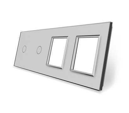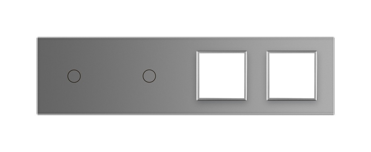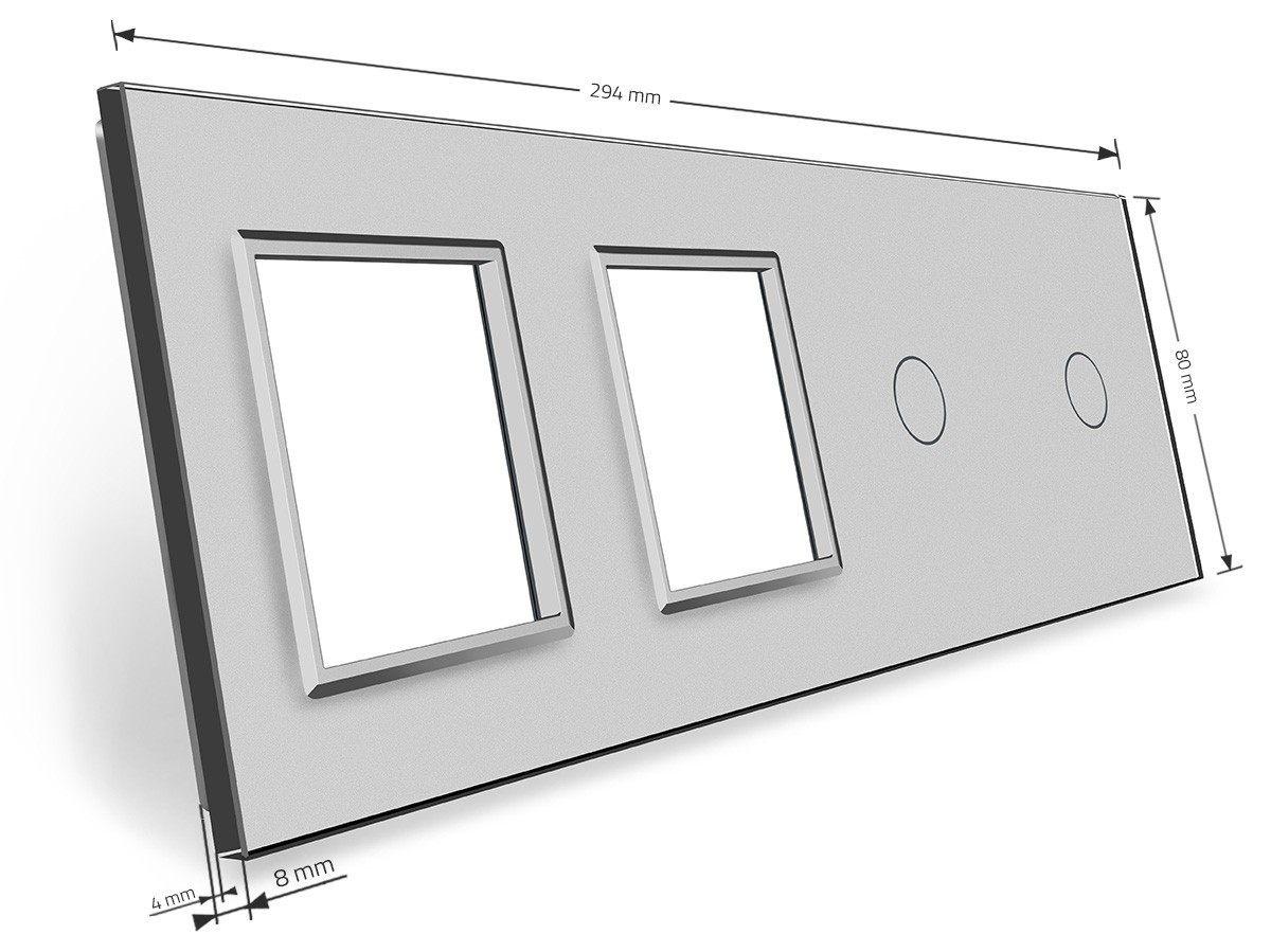 Стеклянная лицевая панель из закаленного стекла предназначена для сенсорных модулей и модулей розеток Livolo. Данный вариант панели подходит для монтажа 2-х сенсорных выключателей для управления 2-я зонами освещения. Рамка подходит для монтажа 2-х электрических розеток, 4-х мультимедийных розеток.